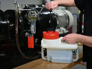 Now you are ready to look at oil storage options-for bulk storage do you want steel tanks or plastic? do you want filtration built-in? do you need spill containment? Utilize our oil storage program worksheet found here: Then we need to look at your smaller transfer containers. There are multiple options here and all are good so it really comes down to preference but utilize containers in sizes that make sense for topping up common pieces of equipment as needed.
